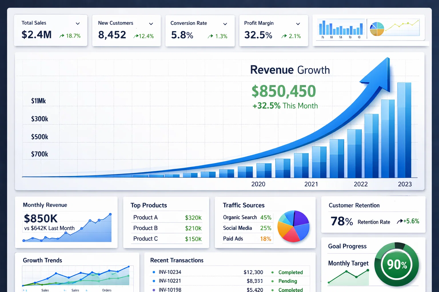 We build data-driven growth marketing systems that improve acquisition, conversion, and retention to generate predictable revenue and long-term business growth.